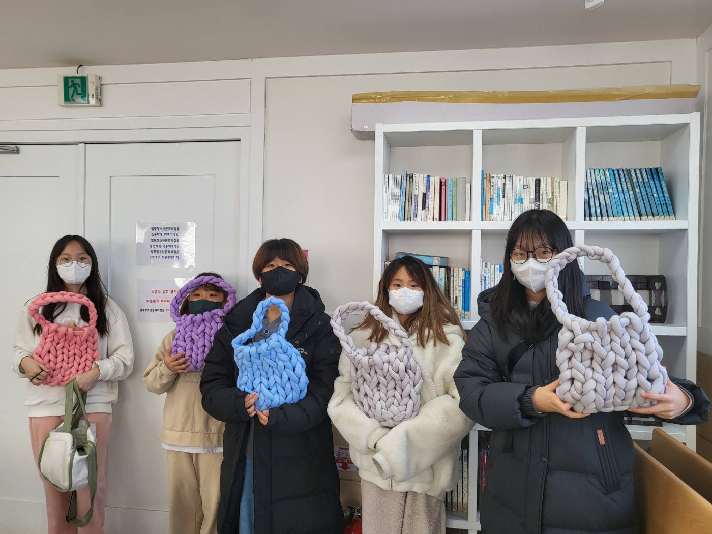 자이언트 얀! 이라고 하는 공예를 아시나요? 엄청 두꺼운 실을 이용한 뜨게질인데요. 우리 청소년들이 관심이 많다는 사실을 접하고 겨울방학 특강으로 일청문에서 준비했습니다. 두시간동안 진행된 이번 활동을 통해 우리 일청이들은 최선을 다해 참여했는데요. 두꺼워서 결코 쉽지 않았지만 멋진 작품을 만들었습니다. 🤟