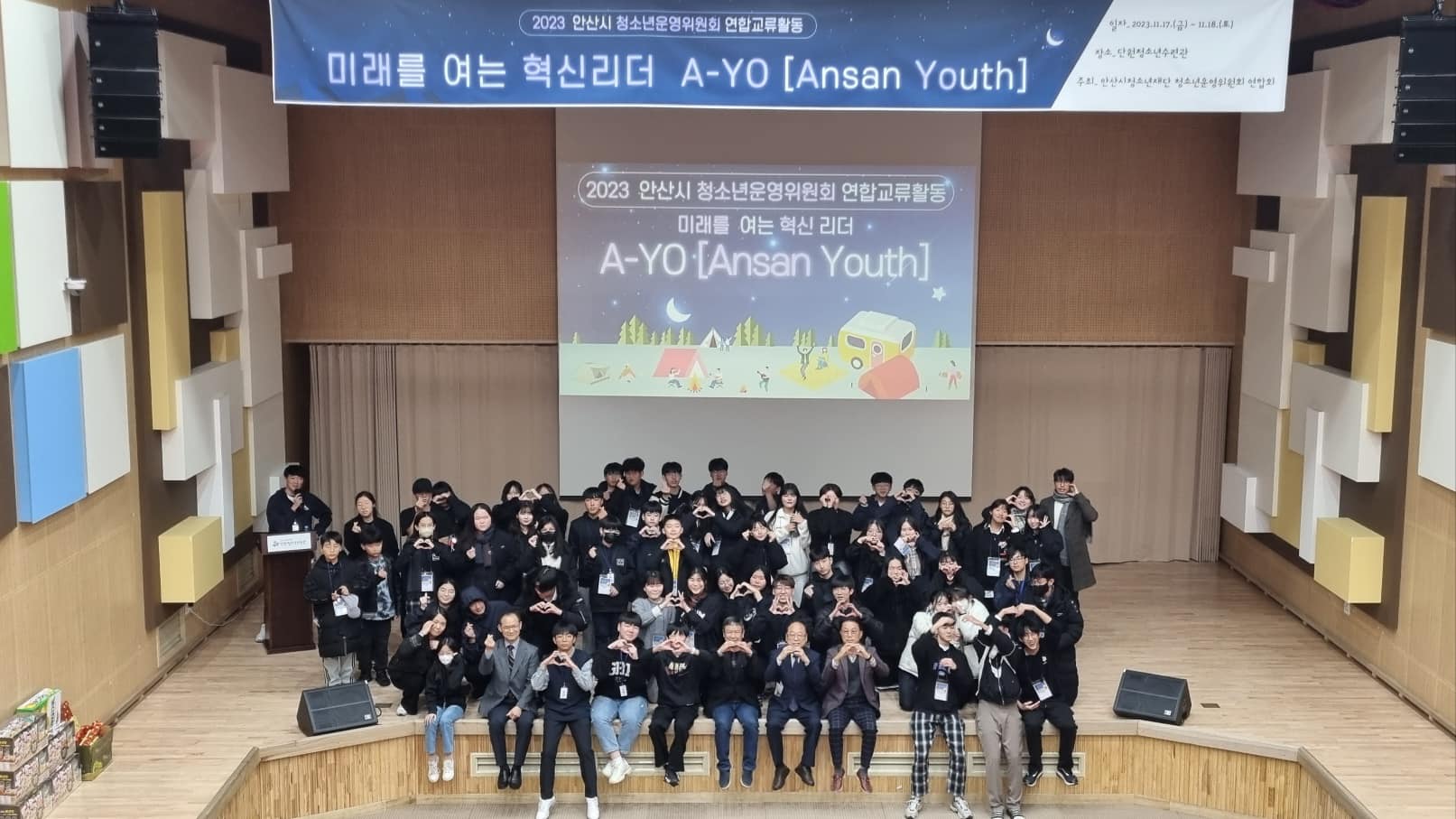 지난달 17일부터 18일까지 무박2일동안 안산 관내 청소년운영위원회가 모두 모여 함께했습니다. 우린 이 연합교류활동의 이름을 '미래를 여는 혁신리더 A-Yo(Ansan YOuth)'라고 불렀는데요. 이 자리에 참여한 우리 일청문의 반딧불이 청소년운영위원회도 뜻깊은 자리에 열심히 참여했습니다. 대표님의 강의, 운영위원회별 활동 공유, 청소년관장제 소개, 명랑운동회까지 밤새 진행되었지만 청소년들의 열정 가득했던 현장이었습니다. A-Yo 화이팅!!🤟