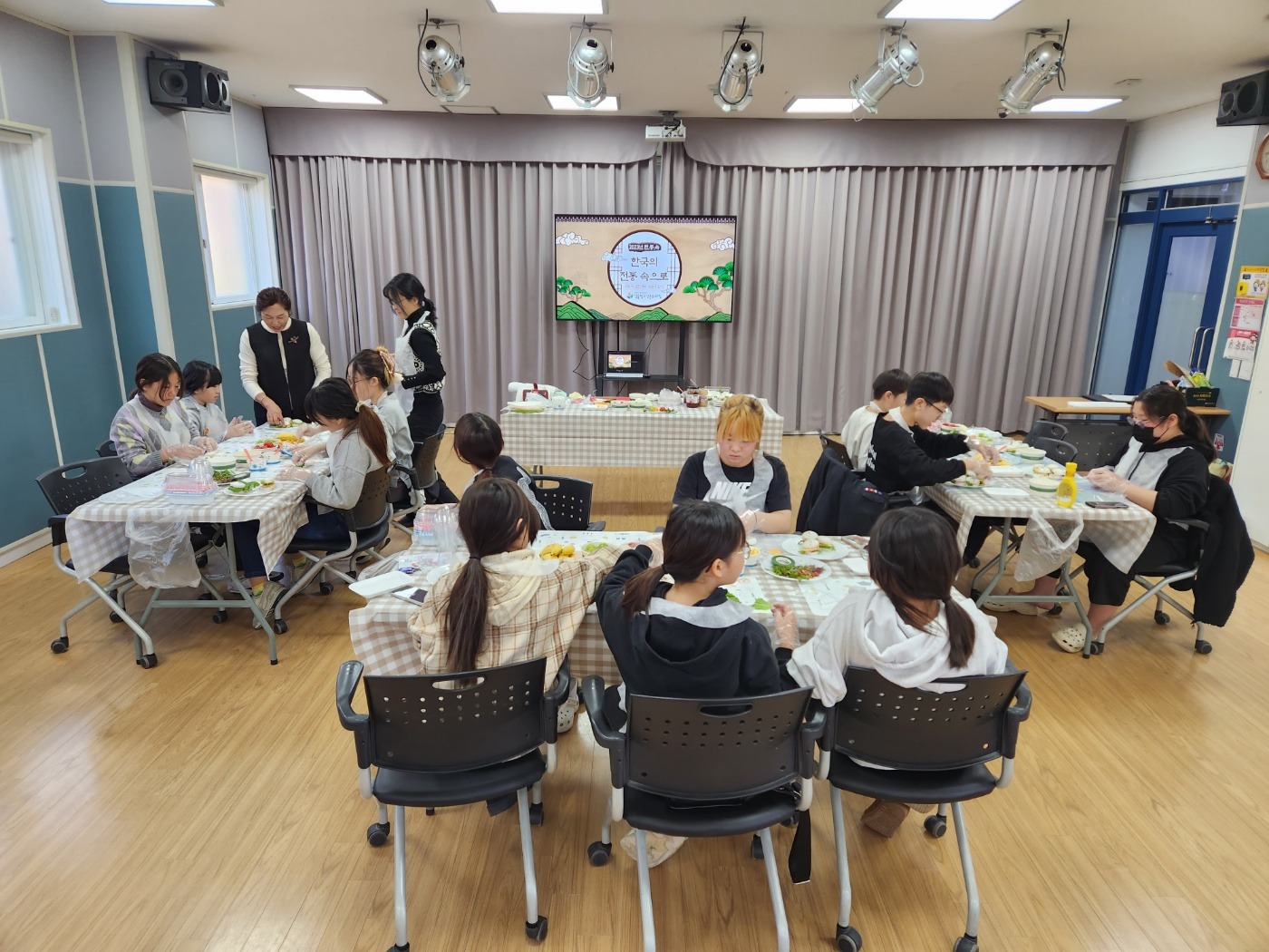 예절체험활동 <한국의 전통속으로> 가 진행되었던 11월의 어느날, 1층 창의놀이터는 예쁘고 맛있는 음식을 만드는 손길이 있었어요. 바로 증편 샌드위치였는데요. 떡 속에 야채와 과일을 넣어 만든 음식이 예절수업과 함께 진행되면서 흥미를 더하는 순간이었습니다. 요리를 통해 예절을 배우는 이번 활동이 청소년에게 의미있는 시간이 되길 바래봅니다.👍