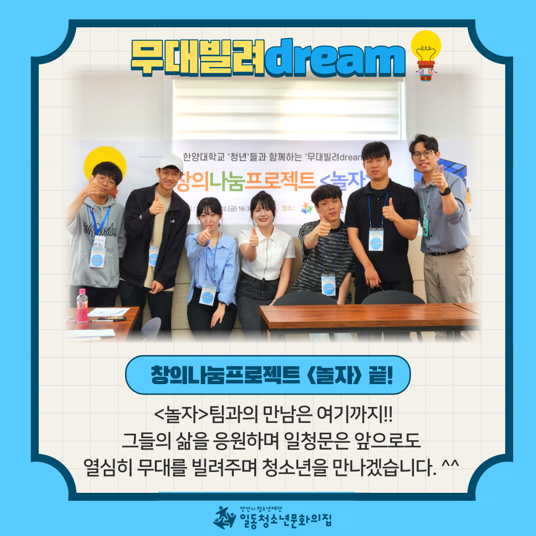 - 놀거리에 대한 우리동네 청소년들의 생각을 알아보는 <일동청소년총회>(6.24토, 1층 창의놀이터)