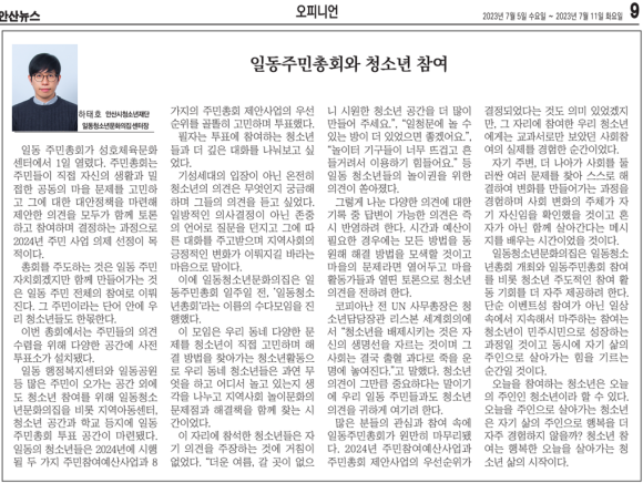 - 일청문을 더 청소년스럽게, 반딧불이 청소년운영위원회와 주도하는 <기관장 간담회> (7.29, 2층 배움놀이터)