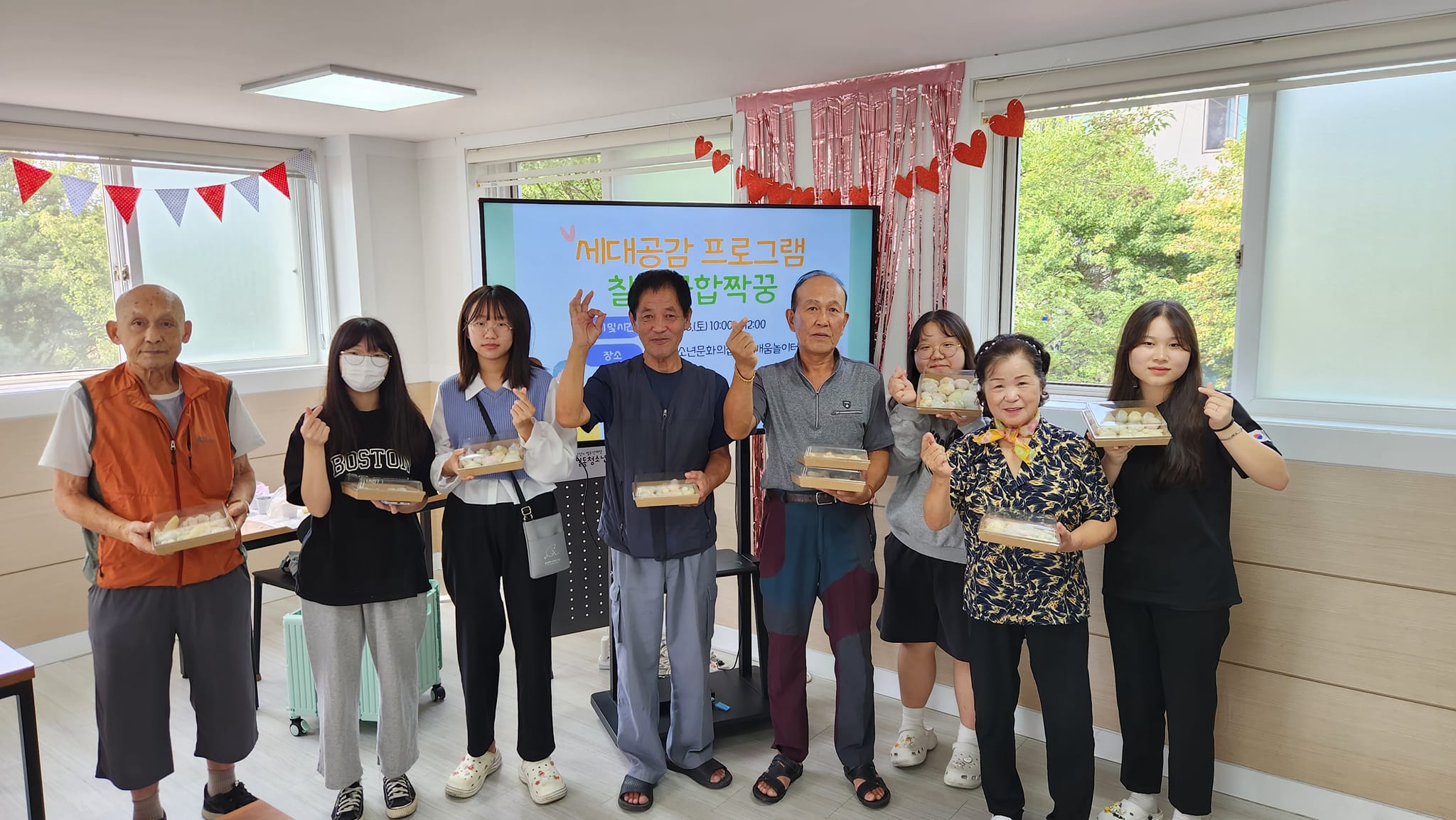 9월의 어느 토요일, 아침부터 일청문에는 고소한 냄새가 가득. 청소년들과 어르신들의 세대공감 프로그램 '찰떡궁합 짝꿍'이 진행되었습니다! 오색빛깔 송편부터 절편까지 얼마 남지 않은 추석을 미리 느껴볼 수 있었는데요 어르신들도 차근차근 열심히 참여해주셨고, 우리 청소년들에게도 포근하고 즐거운 시간이었답니다. 청소년들이 준비한 식혜와 약과도 드시고 따봉을 날려주신 어르신들. 청소년들과 어르신들이 서로를 이해하고 소통할 수 있었던 계기가 되었길 바랍니다👍
