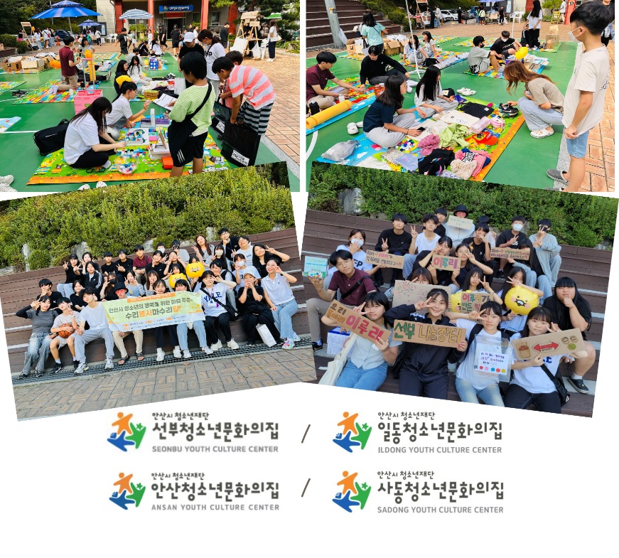 선부청소년문화의집에 안산 관내 4개의 문화의집이 모였습니다. 환경보호에 동참하고 알뜰한 소비를 실천하기 위한 <선부 나눔장터> 때문인데요. '아나바다'를 테마로 (아)껴쓰는 용기 분식점, (나)눠쓰는 에코백 만들기, (바)꿔주는 플라스틱 은행, (다)시쓰는 커피찌꺼기 재활용 키링과 함께 자율 나눔 장터를 운운영했습니다. 모든 문화의집의 동아리 친구들이 함께하니 더 풍성했던 그날의 활동이었습니다. 🤟