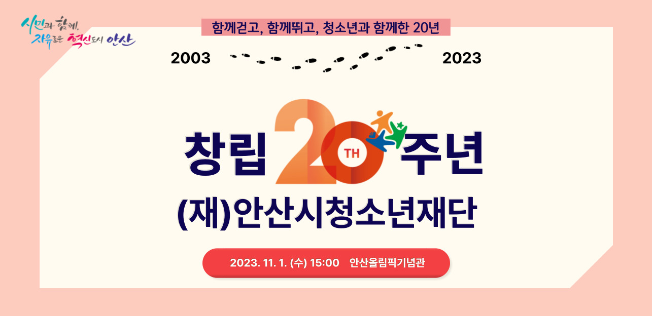 - 함께 걷고, 함께 뛰고, 청소년과 함께한 20년 <안산시청소년재단 창립20주년 기념식> (11.1수, 안산올림픽기념관)